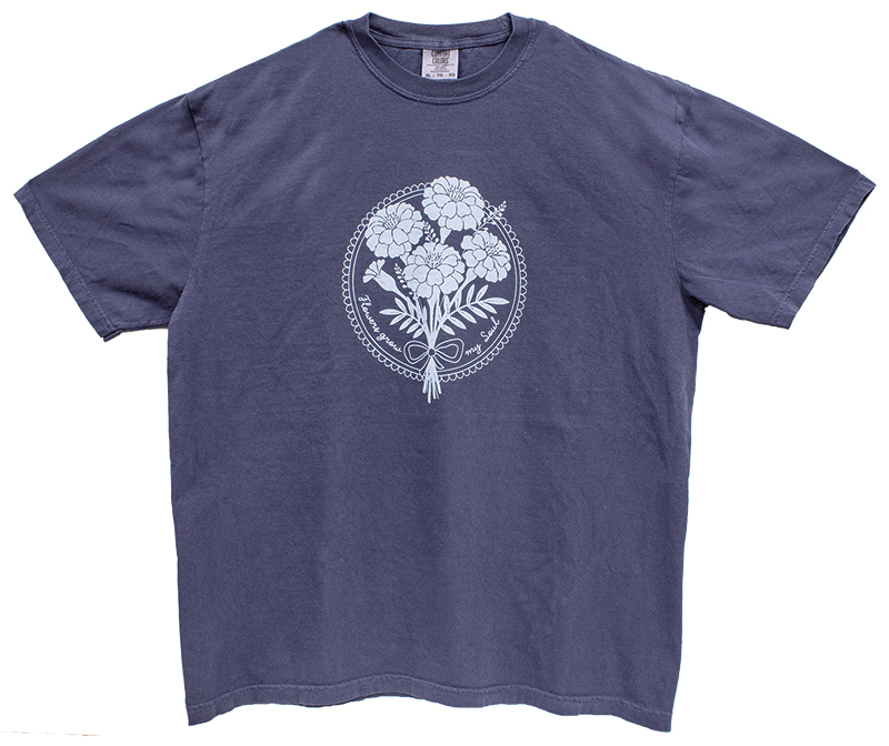 The Comfort Colors Flowers Grow My Soul T-Shirt makes an adorable vintage-inspired addition to a casual wardrobe. The 100% cotton tee offers a relaxed, oversized fit that’s just as comfortable as it is stylish. Garment dyed with a sustainable process and soft-washed, the shirt has a cool navy hue. Light blue screen printed design on the front of the shirt shows a bouquet of flowers set in a lace oval with script text that reads, “flowers grow my soul.” Pre-shrunk for a perfect fit, this tee is available in unisex sizes S through XXL and was proudly designed in the USA.