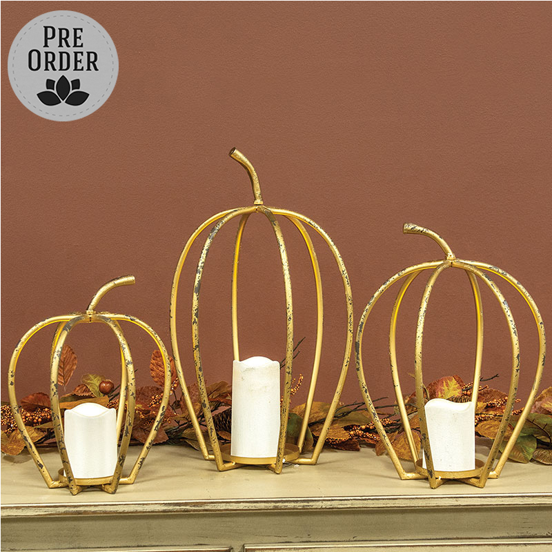 Minimum quantity for "Distressed Golden Pumpkin Open Air Lanterns, 3/Set" is 1.