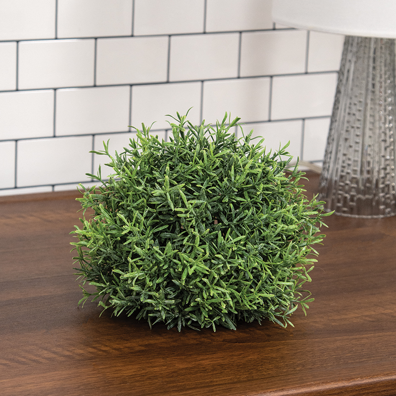 Create an abundant feeling in any home with the Dusty Rosemary Half Sphere. Crafted from plastic, this artificial half-dome features dense rosemary stems on a green base. The leaves blend from light green at the tips to a deeper color at the base. A light, dusty-looking finish offers a realistic touch. This half-sphere looks elegant displayed in a pedestal, decorative tray, or bowl, for a farmhouse touch during spring or every day.