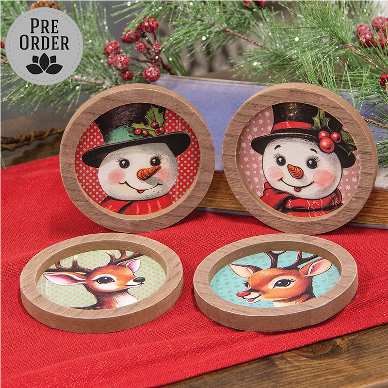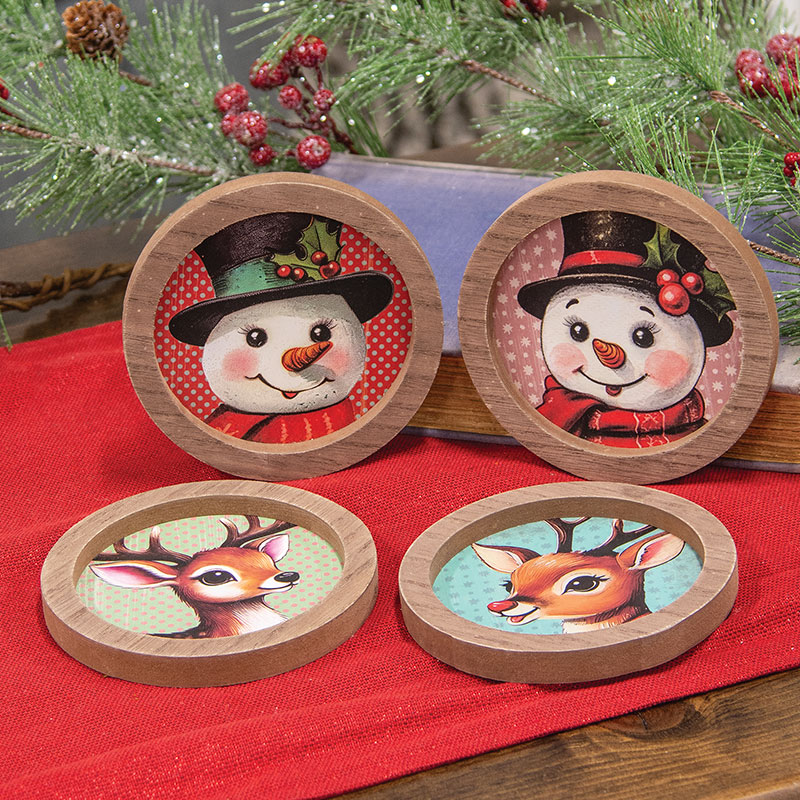 Minimum quantity for "Nostalgic Winter Friend Mini Round Portrait Coaster - 4 Asstd." is 8.