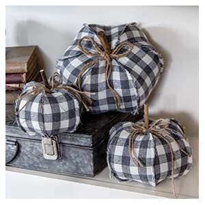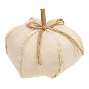 Add a modern twist to fall decorating with the 6.5” Stuffed Canvas Pumpkin. Made from ivory fabric that has been sewn together to form frayedpumpkin ribs, it is generously stuffed for a plush appearance. Features a wooden stem stick on top that is accented by a jute string bowand measures approximately 5.5” high by 6.5” in diameter.