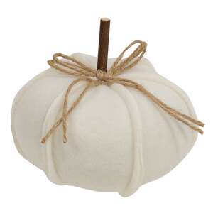 Add a soft and cozy touch to autumn décor with the 8” FleeceStuffed. The plush, round stuffed pumpkin features with smooth sewn edges tocreate textured ribs throughout. that create a pumpkin texture throughout. Measures6.5” high by 8” in diameter and is accented with a wooden stick stem tied witha jute string bow.