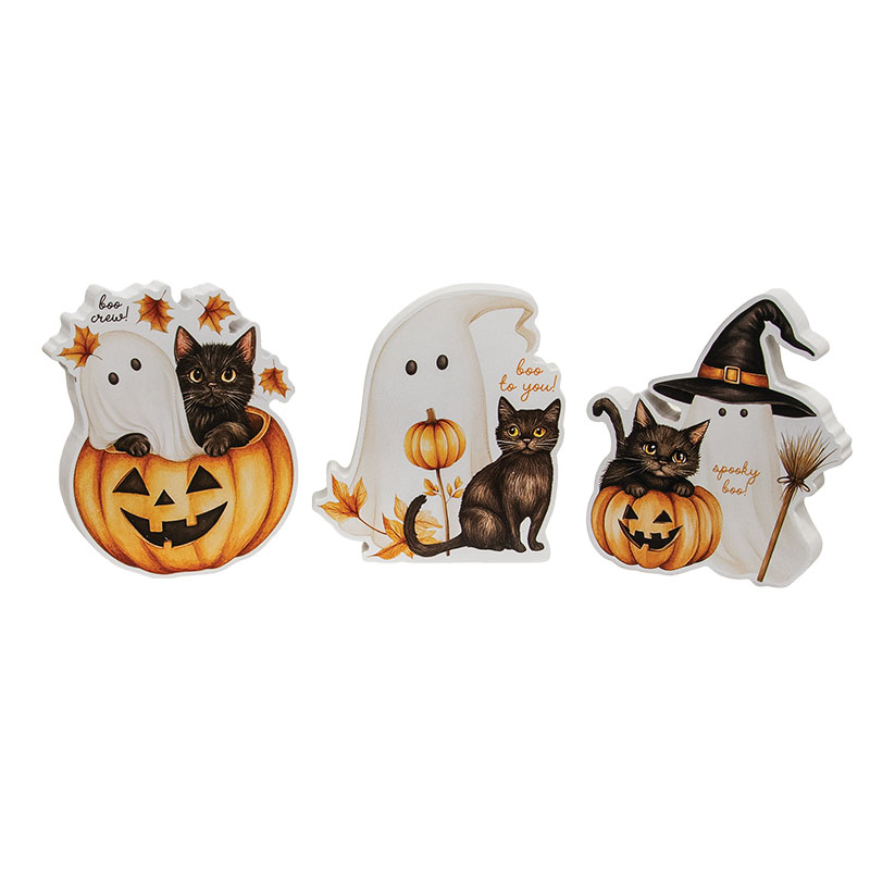 Minimum quantity for "Spooky Boo Wooden Cat Sitter - 3 Asstd." is 6.