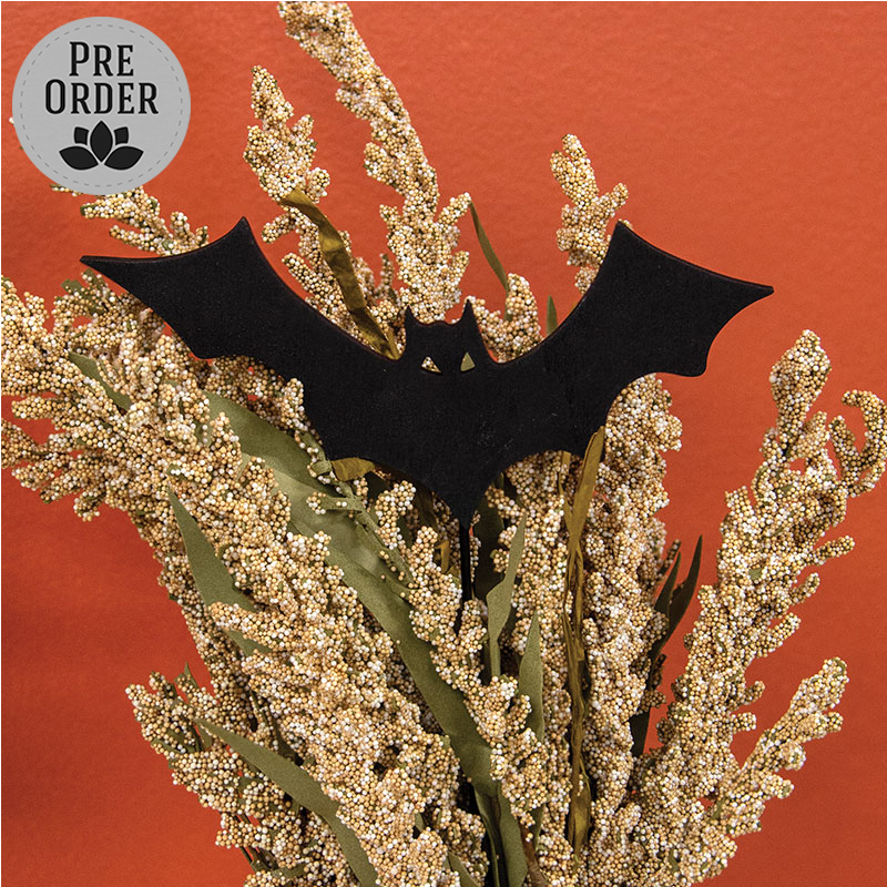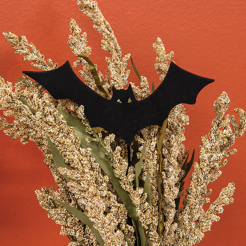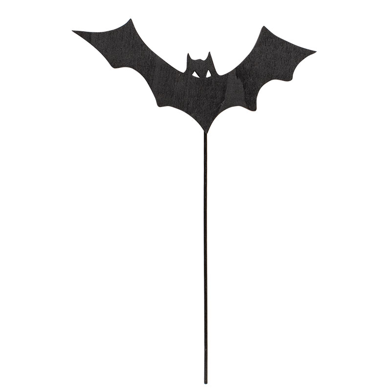 Seasonal decor gets an upgrade when the Spooky Halloween Bat Silhouette Planter Stake is added to a potted plant, floral arrangement, or other display. The wooden stake topper shows the silhouette of a bat with wings stretched wide. A black finish gives a sleek, versatile look that suits a range of styles. A long black dowel holds the taper. Measures 11” high by 7.5” wide by .25” deep.