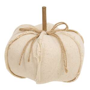 Bring a beautiful rustic accent to the farmhouse this Fall in the Stuffed Autumn Pumpkin with Seams, 5". This lovely brown textured fabric pumpkin measures 5" in diameter and is 4.5" tall. It is topped with a natural stick stem and jute bow and has raw cut seams for a rustic feel. This pumpkin looks great paired with an Autumn-themed sign and Fall eucalyptus florals.