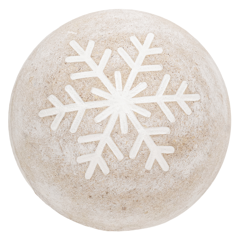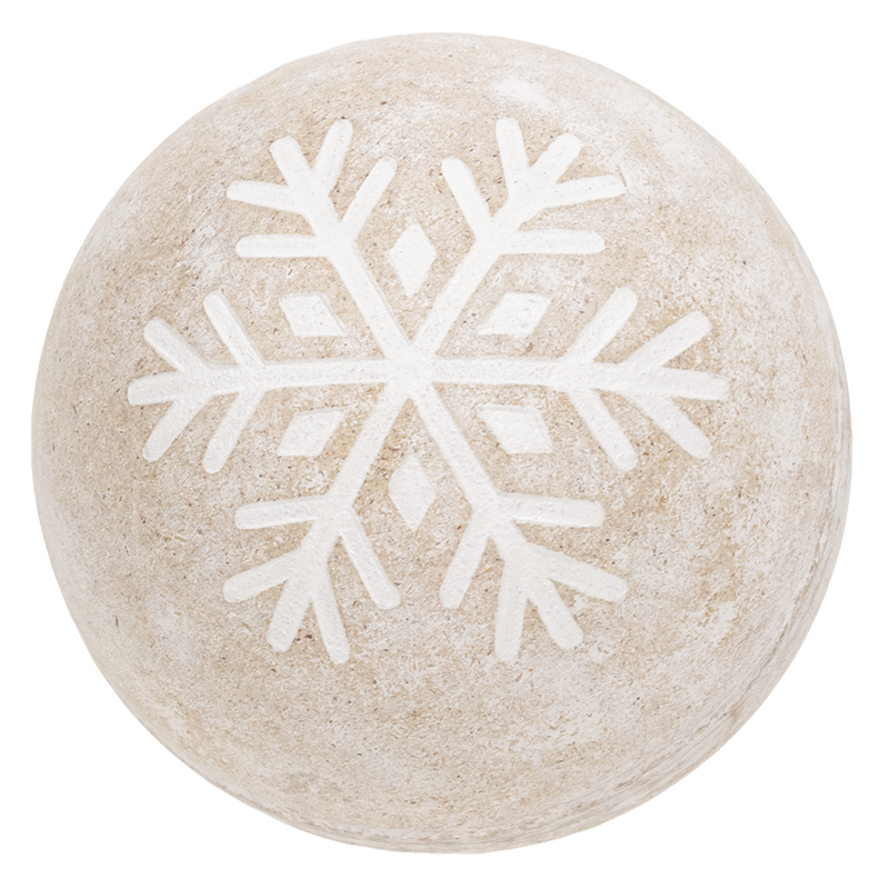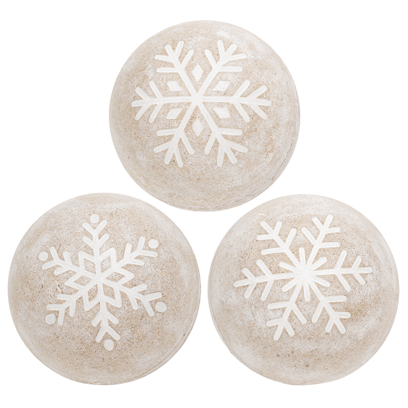 Fill a decorative bowl or tray with our 3 assorted Distressed White Wooden Snowflake Engraved Decorative Balls. Measuring 4" in diameter, they feature a distressed whitewashed finish that easily suits rustic primitive or farmhouse holiday decorating. A unique snowflake is engraved onto one side of each ball. This essential piece of winter decor looks great displayed in our decorative ball holders.
