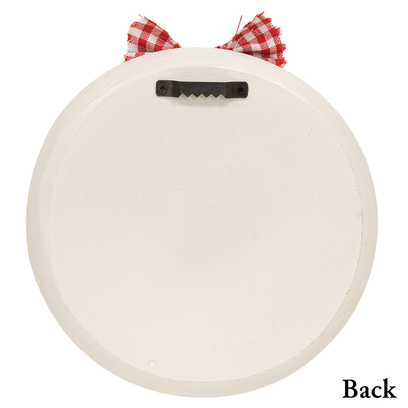 Complete charming winter holiday displays with our Melting Snowman Resin Plates. The 3 assorted plates each feature a raised dimensional "melting" snowman design with an antiqued ivory finish. Each winter character wears either a black top hat, a red gingham bow, or a red plaid bow above red text that displays a sweet seasonal message. One reads “good friends melt my heart,” one says “I’m just here to melt away,” and one says “most likely to melt.” Can hang by the included sawtooth hanger or be displayed on a plate stand. Measures 6” in diameter by 0.5” deep.