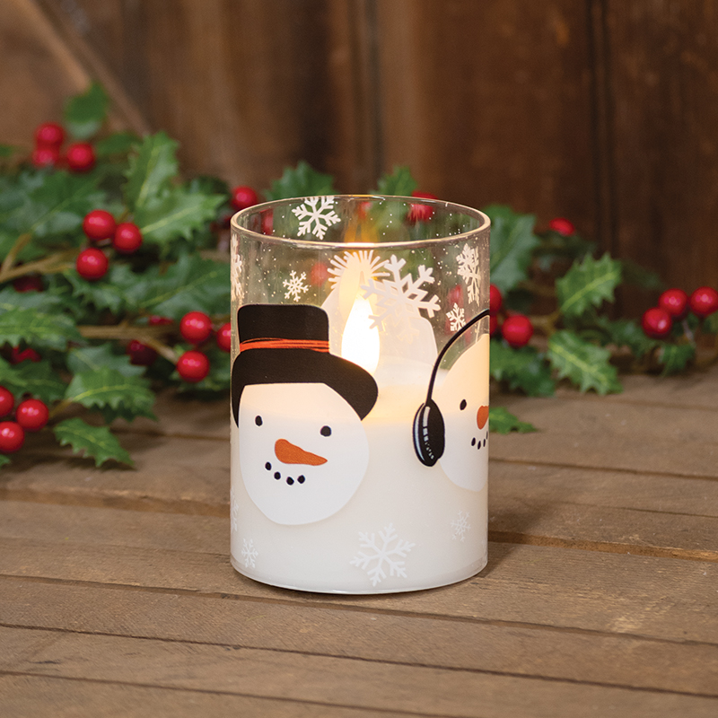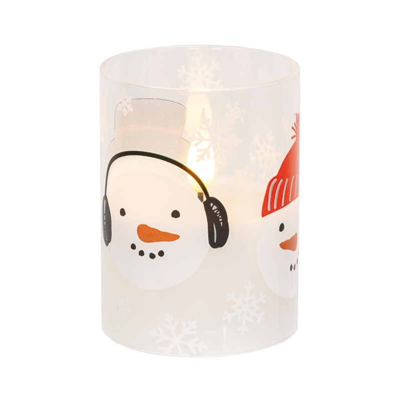 Scattered Snowman & Snowflake Glass Timer Pillar - 4"